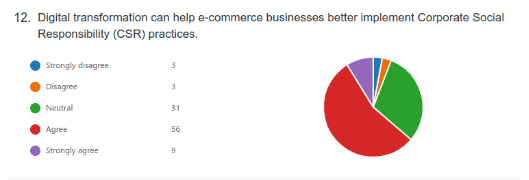 Recent recognition of digital technologies’ potential to promote CSR and sustainability in e-commerce , accelerated by the COVID-19 pandemic’s impact , has positioned this study to explore the interplay between digital transformation, CSR, and sustainability in e-commerce. Consequently, this study will provide a valuable contribution to the understanding of harnessing digital transformation to promote sustainable e-commerce practices guided by CSR principles.
